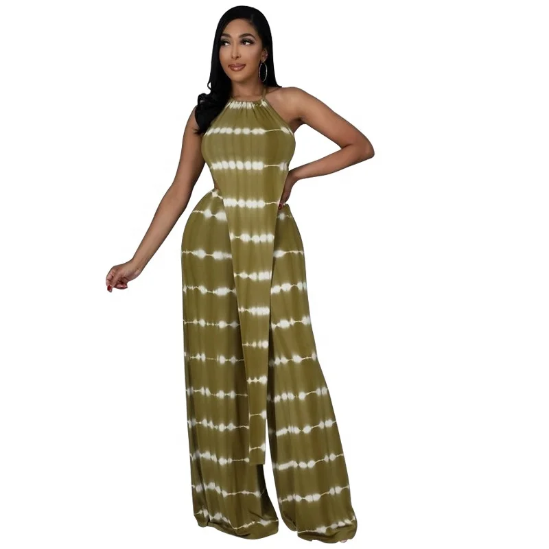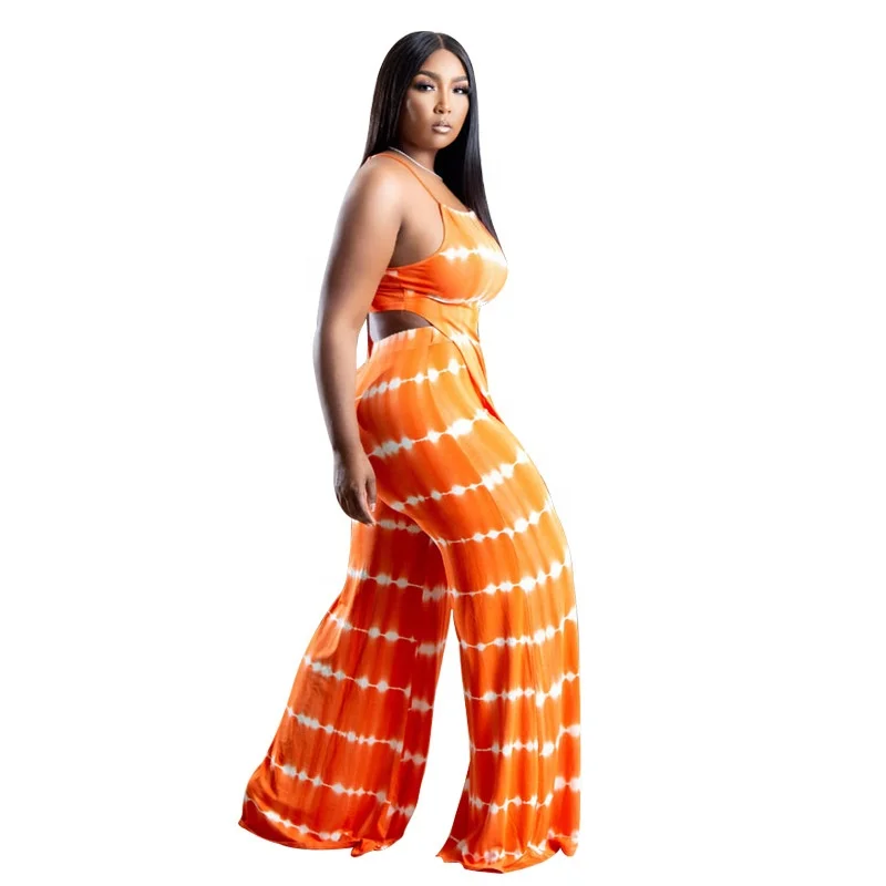 Premium Elegant Women Clothing Set Custom Irregular Striped Vest Long Pants Halter Sleeveless Print Bodycon Casual Pleated